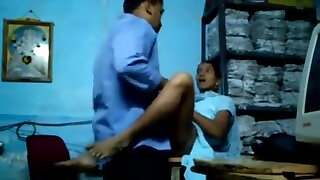 Indian office sex - Desi Female boss works on computer while employee comes and Quick Screw (Hindi Bang-out)